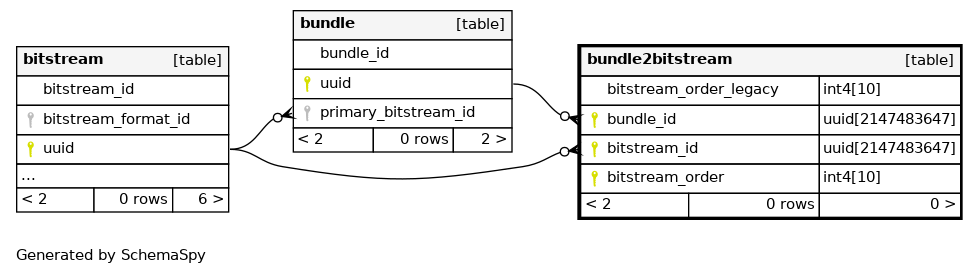 | bundle2bitstream_pkey | Primary key | Asc/Asc/Asc | bitstream_id + bundle_id + bitstream_order |